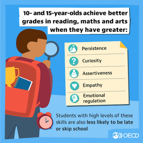 These are skills like cooperation, empathy, and creativity to find solutions, or the persistence to get things done despite challenges. Such social and emotional skills underpin our ability to interact with other people and manage our own emotions and behaviour in healthy and productive ways.”