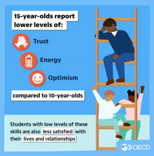 The 2023 updated OECD survey repeated the finding from 2019, that the average 10 year old has lower social-emotional skills than the average 15 year old. Can you think of any other area of education where a decline in skill set would be seen? I can't! Which makes this finding truly worrying as it occurs during key teenage years when our children are trying to navigate changes that result in them becoming young adults.